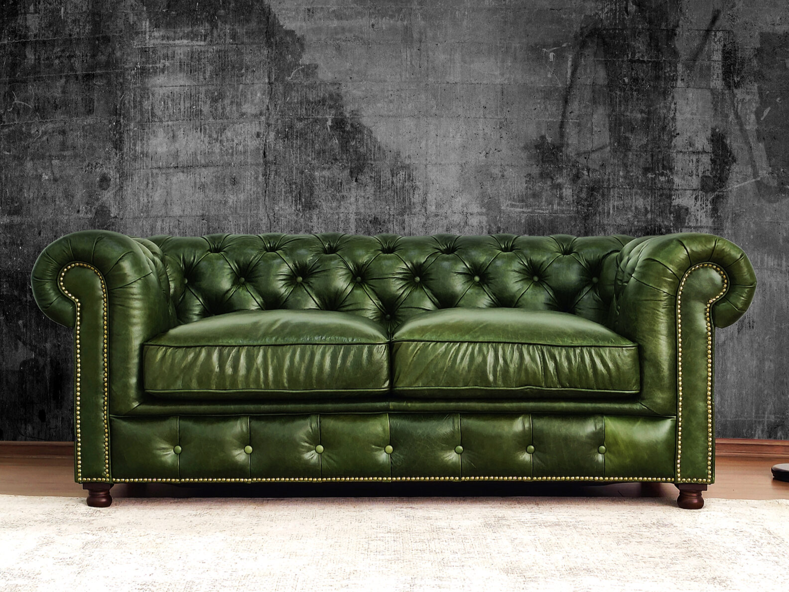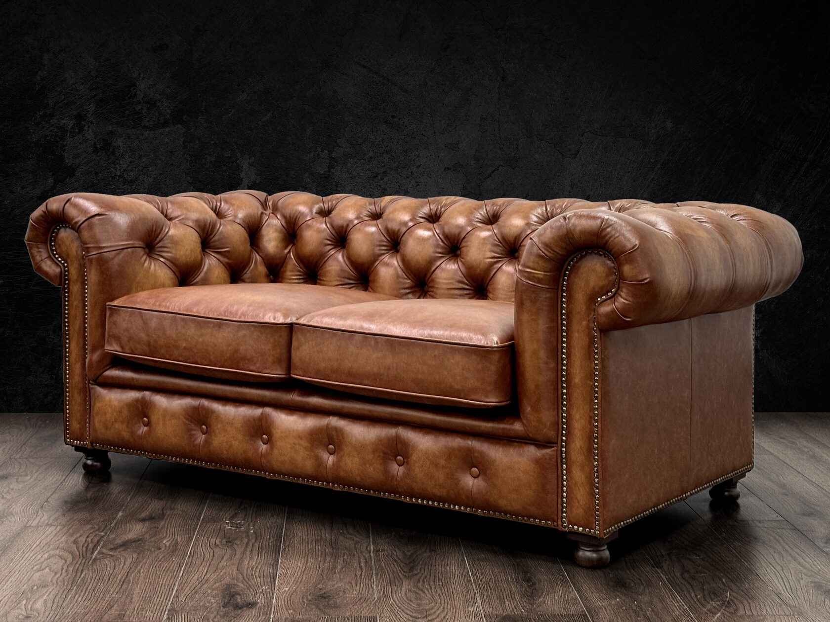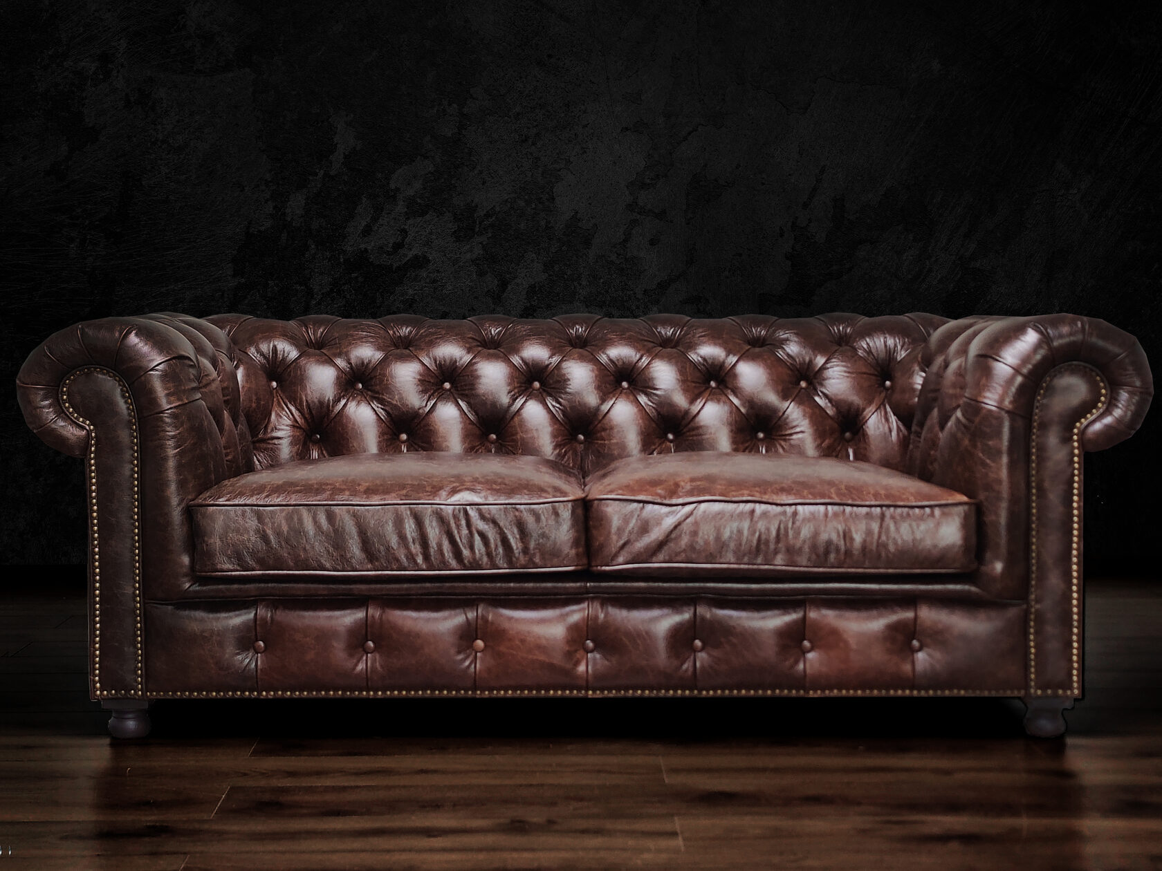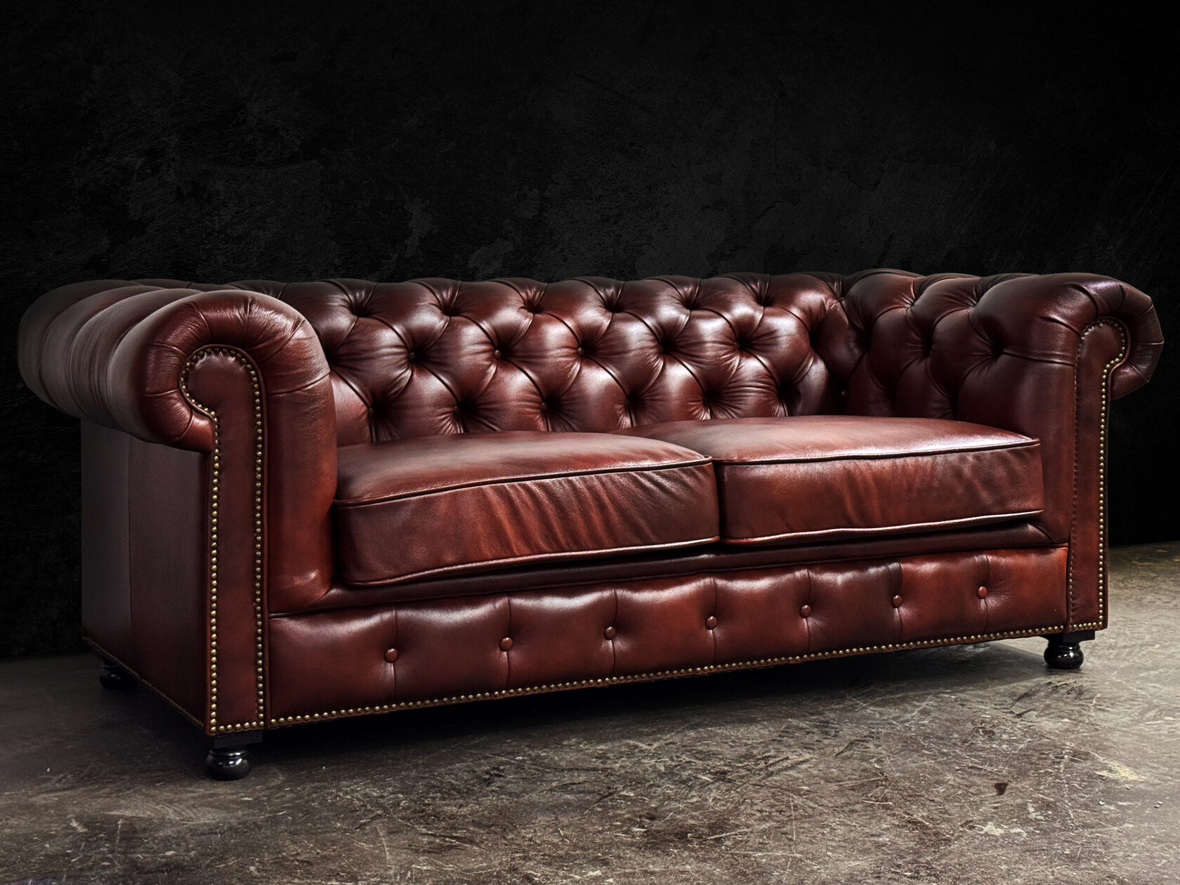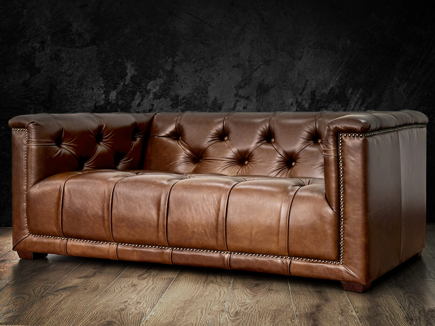 Габаритные размеры: Ш/Г/В 220х95х75 см. Размер посадочного места: 140х65 см. Высота сиденья: 45 см. Высота ножек: 12 см. Ножки: массив бука, цвет - Орех тёмный. Декоративные гвозди: Цвет - Old Gold; поштучно; Производство - Италия. Механизм трансформации: не предусмотрен Материал каркаса: березовая шлифованная фанера сорта 3/4, хвойный брус. Мягкое наполнение: В сиденье высокоплотный ППУ (поролон) топовых марок HR и EHR. В качестве упругого основания под подушками служит пружина змейка.
