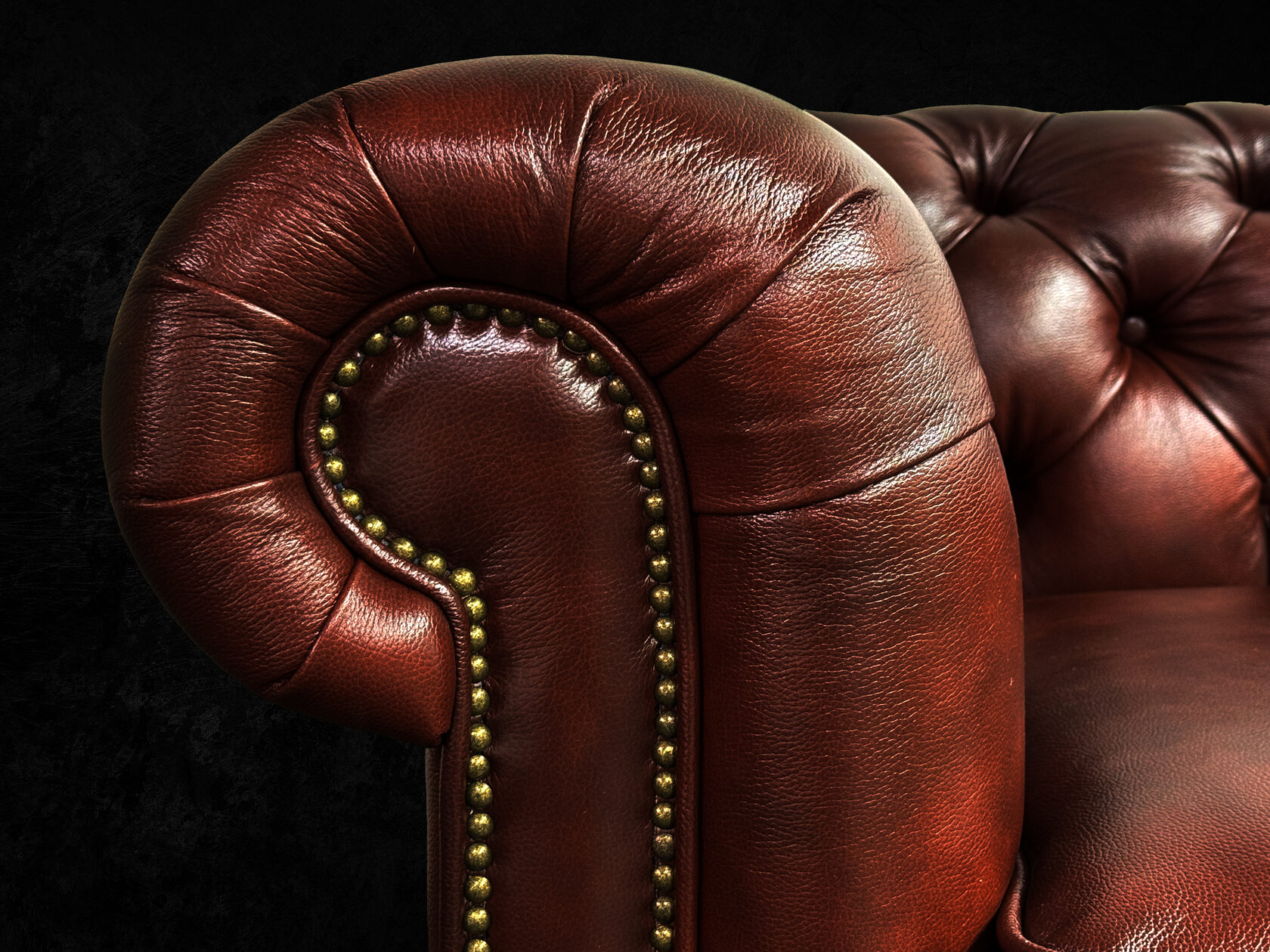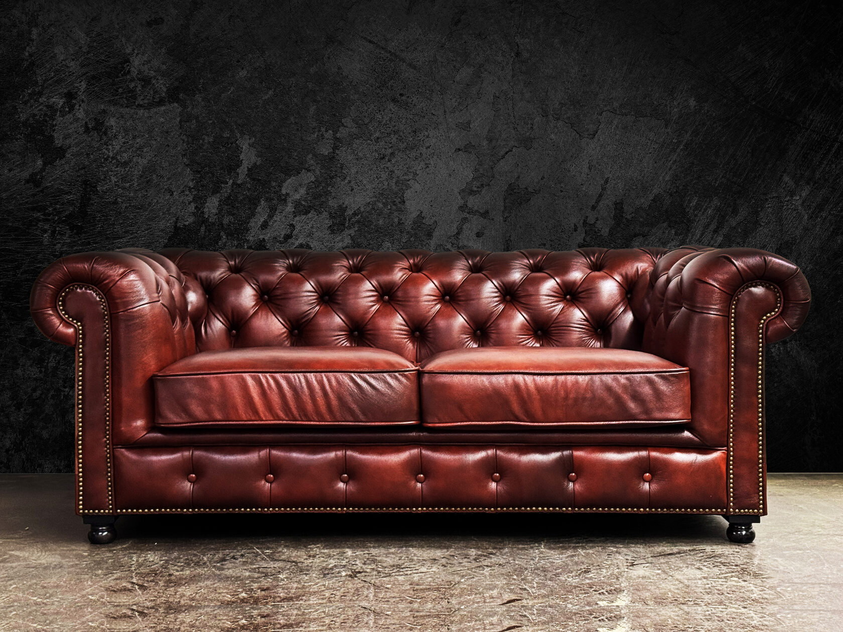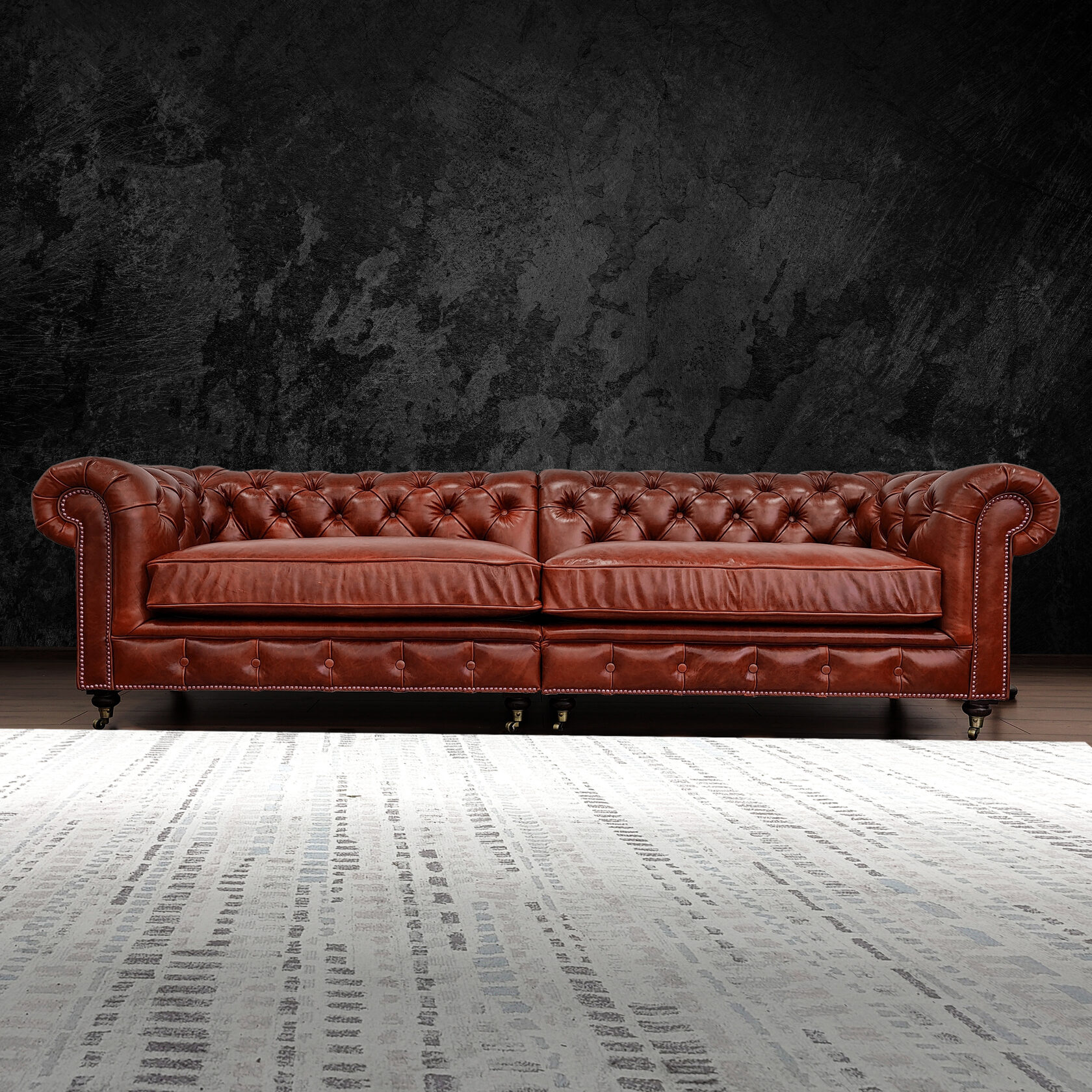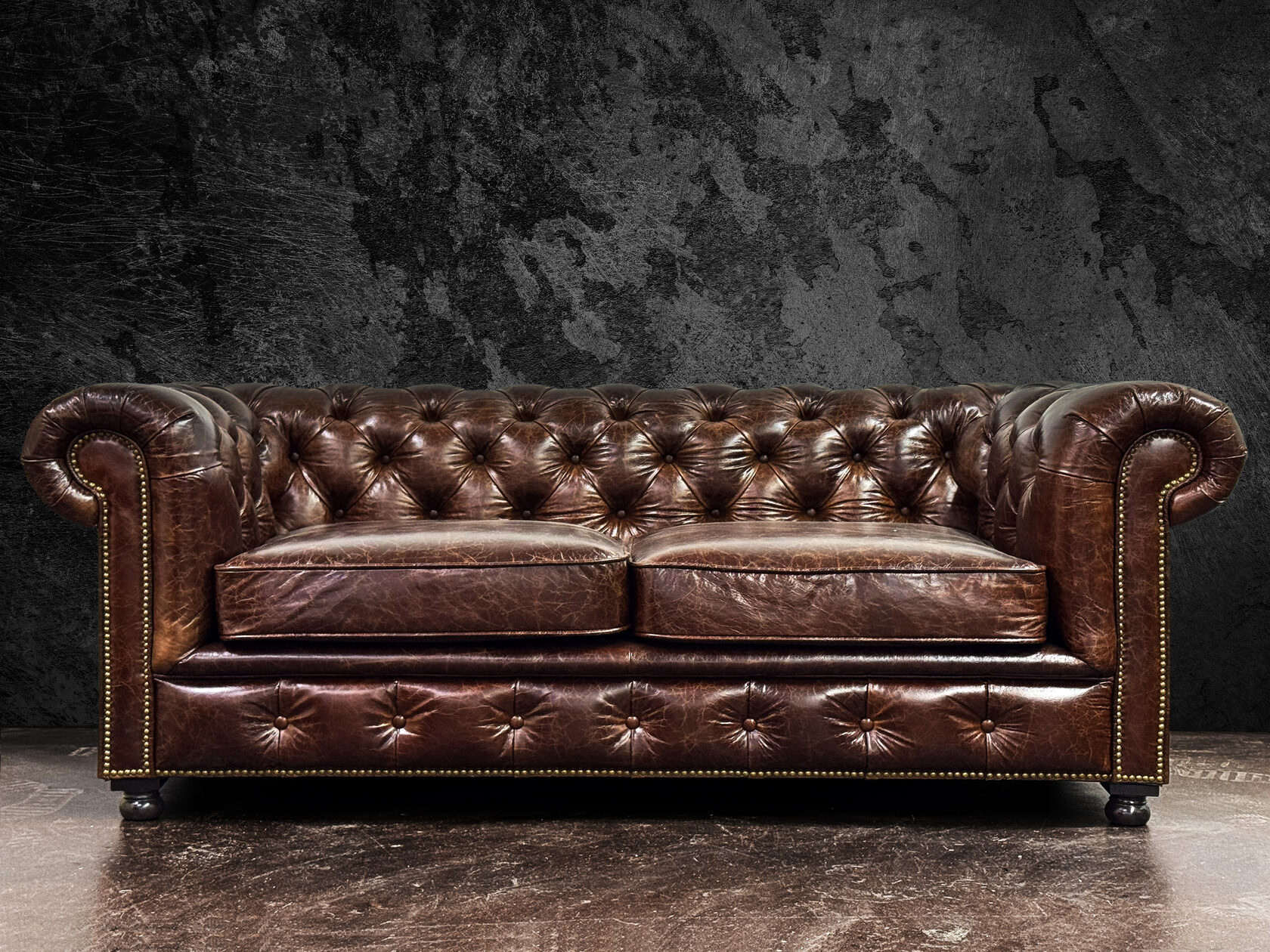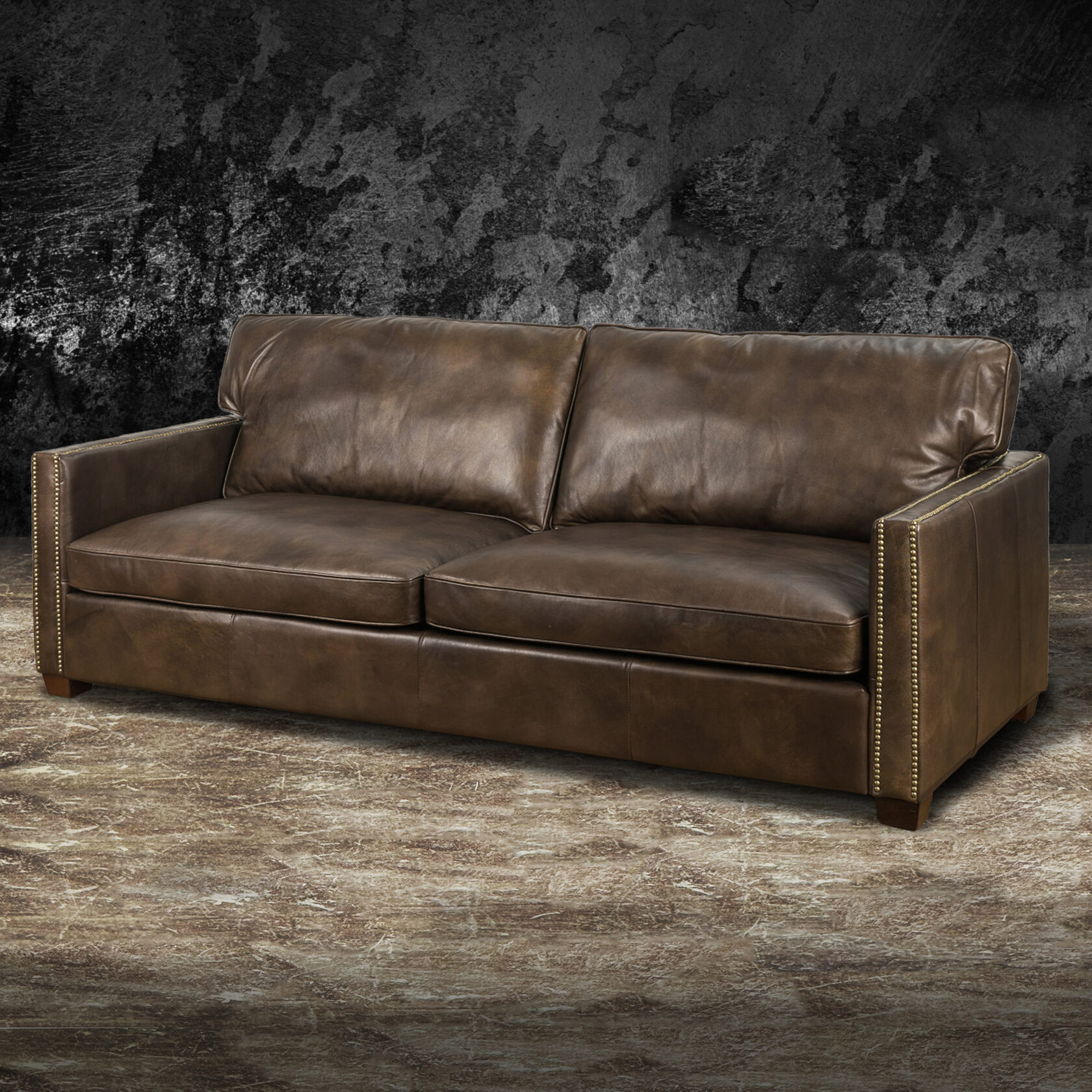 Габаритные размеры: Ш/Г/В 220х95х75 см. Размер посадочного места: 140х65 см. Высота сиденья: 45 см. Высота ножек: 12 см. Ножки: массив бука, цвет - Орех тёмный. Декоративные гвозди: Цвет - Old Gold; поштучно; Производство - Италия. Механизм трансформации: не предусмотрен Материал каркаса: березовая шлифованная фанера сорта 3/4, хвойный брус. Мягкое наполнение: В сиденье высокоплотный ППУ (поролон) топовых марок HR и EHR. В качестве упругого основания под подушками служит пружина змейка.