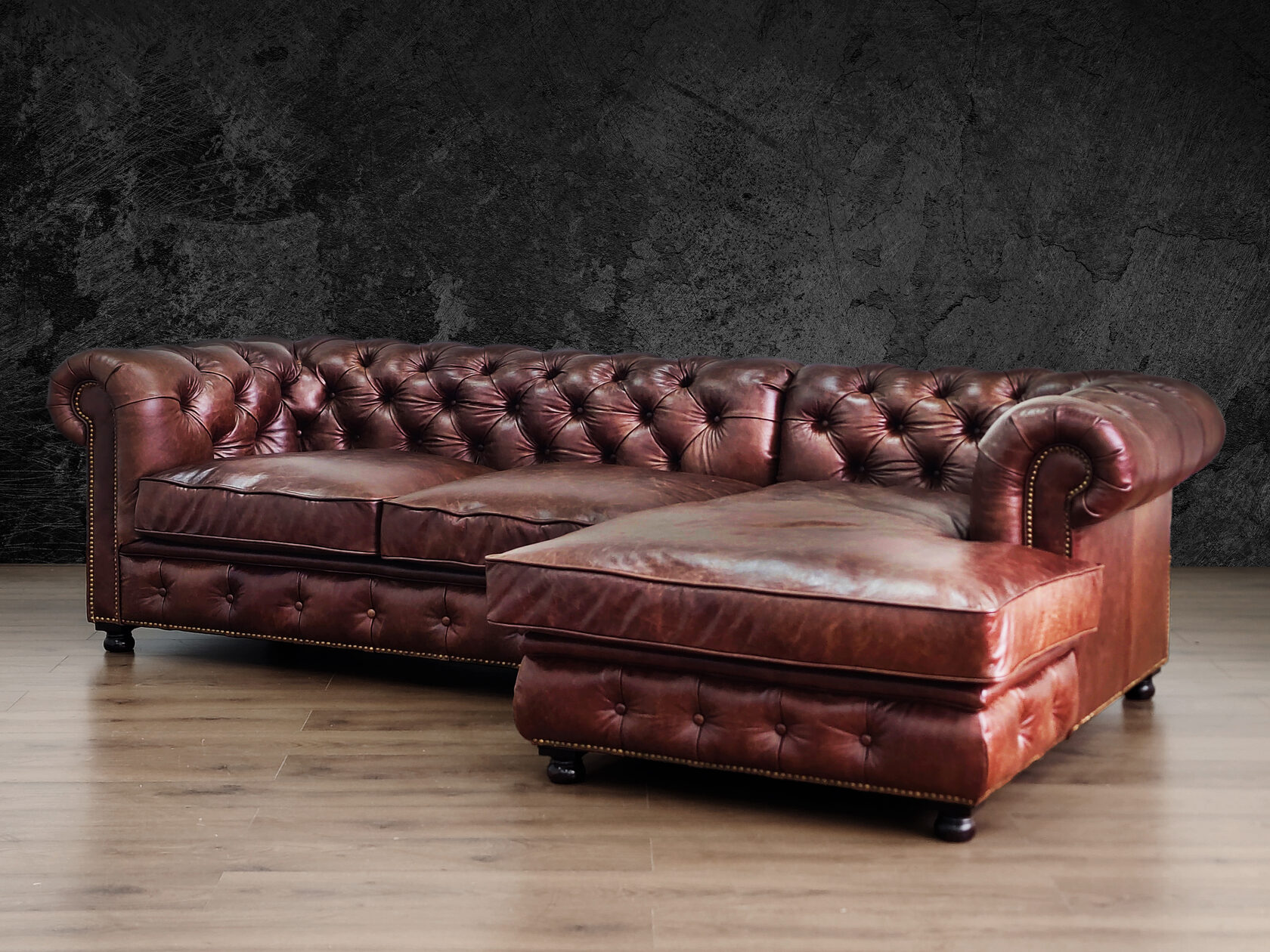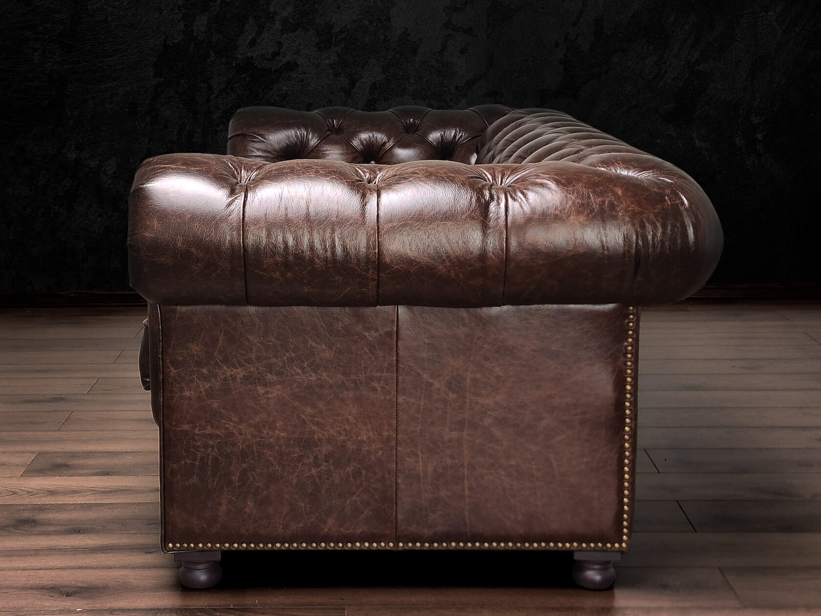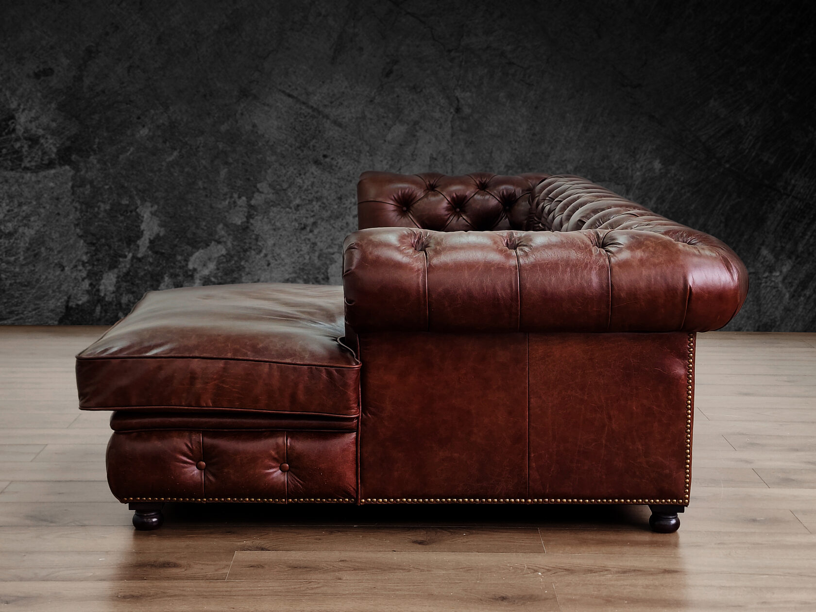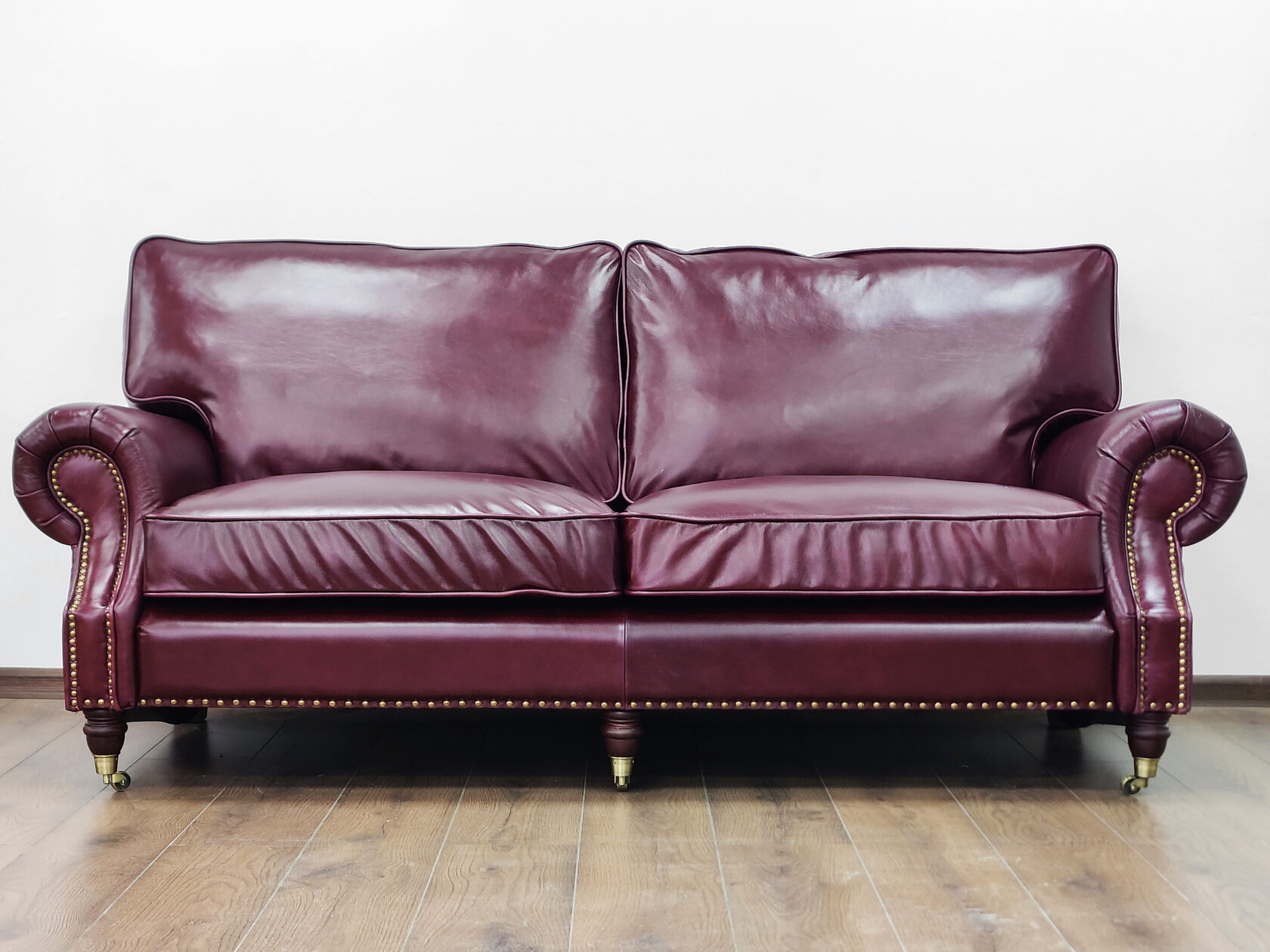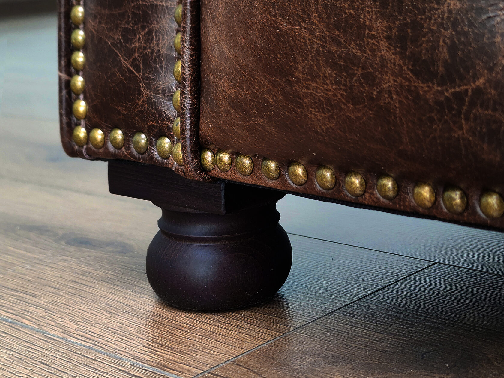 Размер посадочного места: 170х65 см. Высота сиденья: 45 см. Высота ножек: 5 см. Ножки: массив бука, высота 8 см, цвет - венге. Декоративные гвозди: Цвет - Old brassed (латунь); поштучно; Производство - Италия. Механизм трансформации: конструктивно не предусмотрен. Материал каркаса: березовая шлифованная фанера сорта 3/4, хвойный брус. Мягкое наполнение: В сиденье высокоплотный ППУ (поролон) топовых марок HR и EHR. В качестве упругого основания под подушками служит пружина змейка.