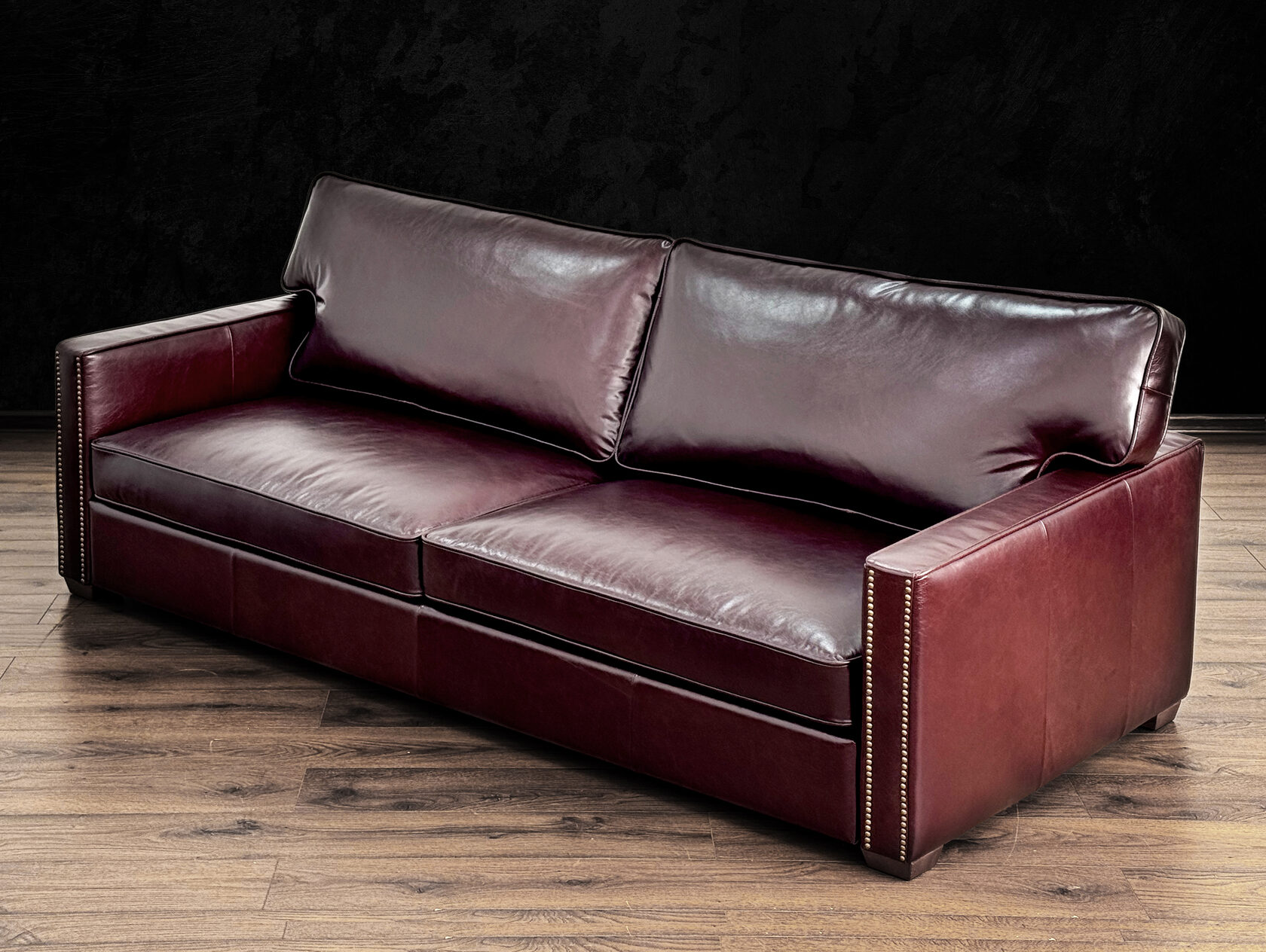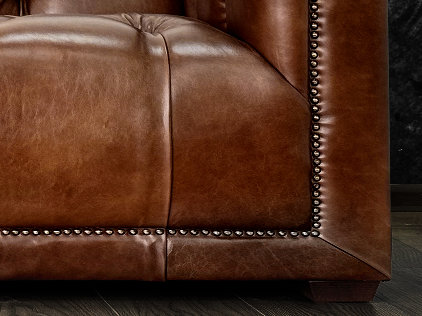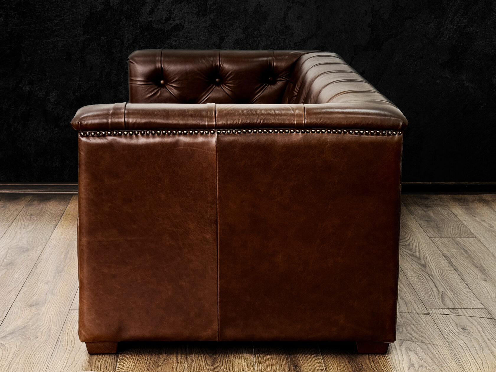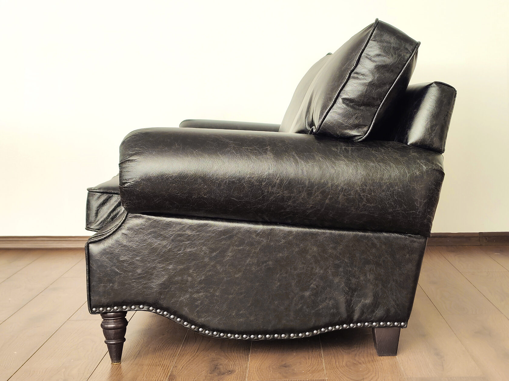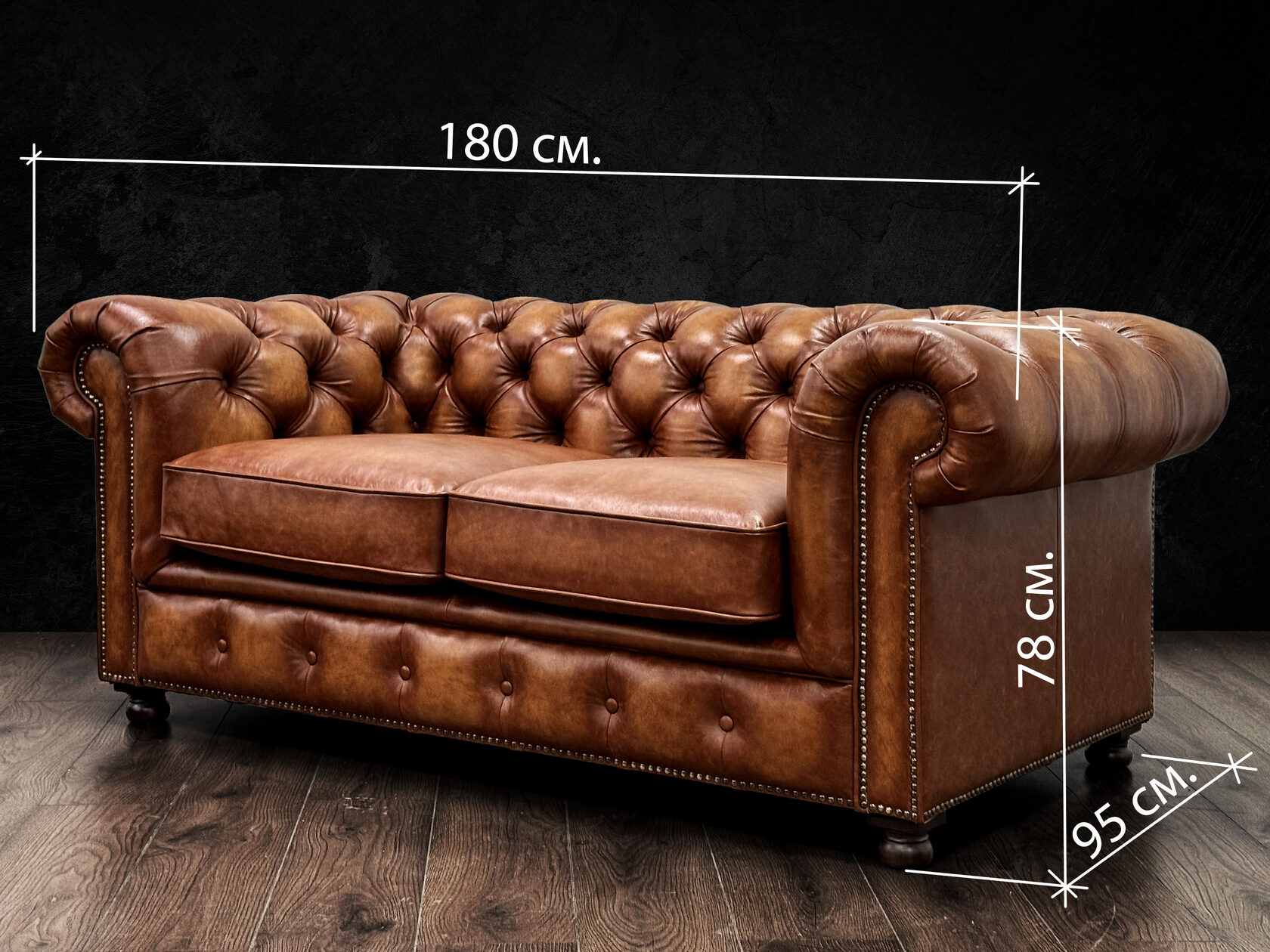 Размер посадочного места: 170х65 см. Высота сиденья: 45 см. Высота ножек: 5 см. Ножки: массив бука, высота 8 см, цвет - венге. Декоративные гвозди: Цвет - Black; бьются поштучно; Производство - Италия. Механизм трансформации: конструктивно не предусмотрен. Материал каркаса: березовая шлифованная фанера сорта 3/4, хвойный брус. Мягкое наполнение: В сиденье высокоплотный ППУ (поролон) топовых марок HR и EHR. В качестве упругого основания под подушками служит пружина змейка.