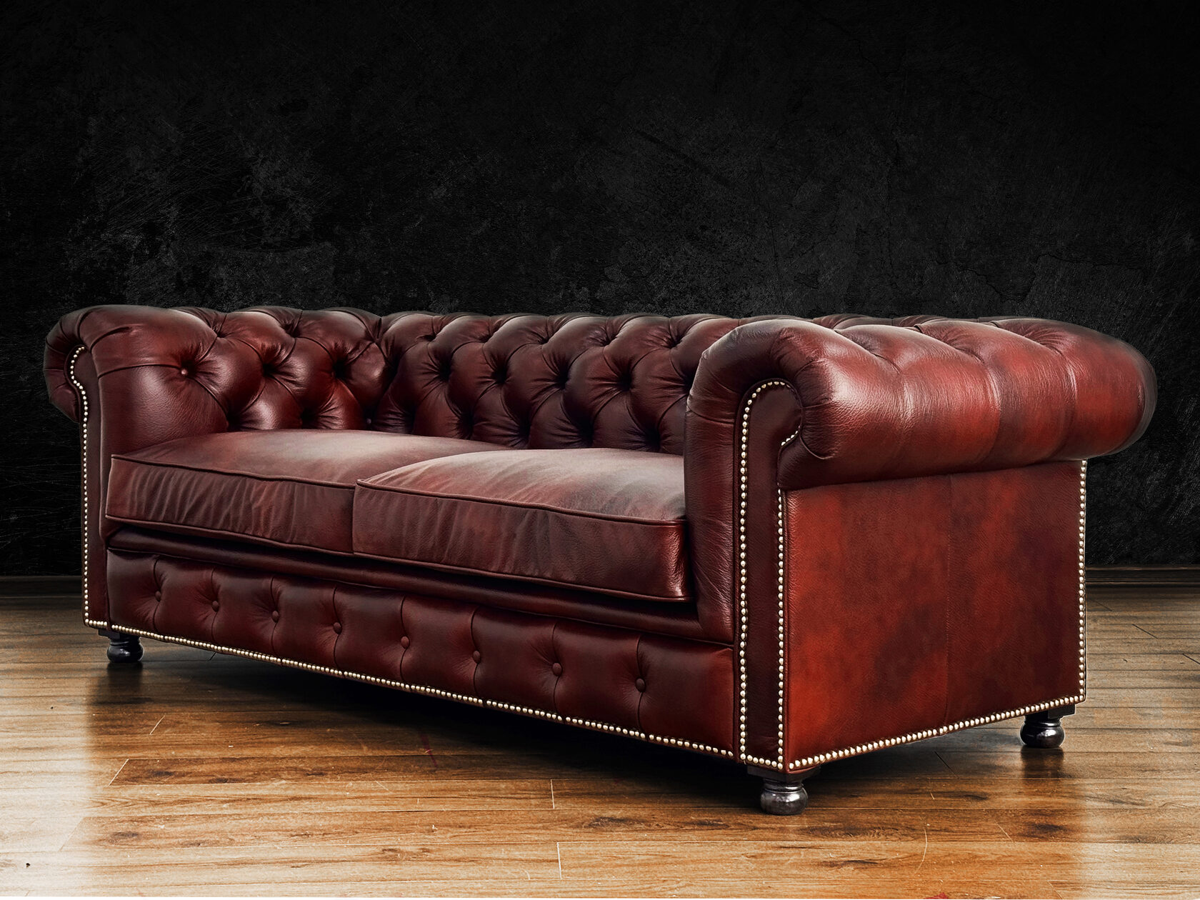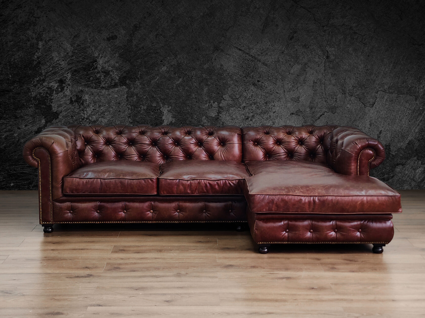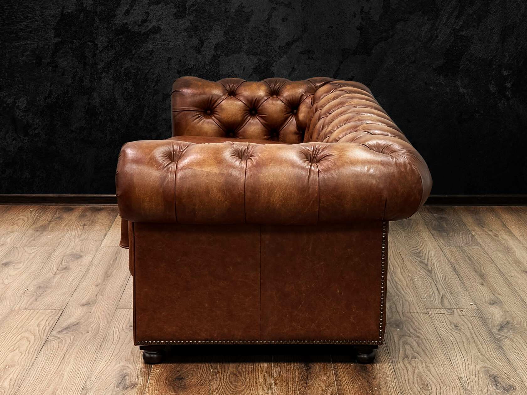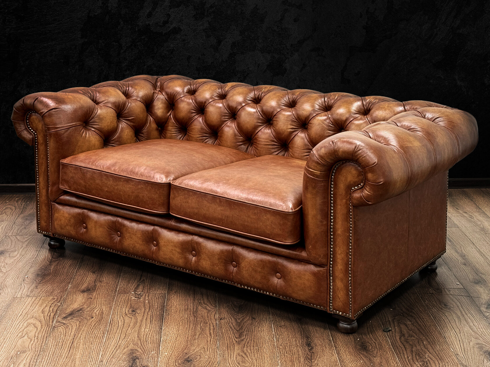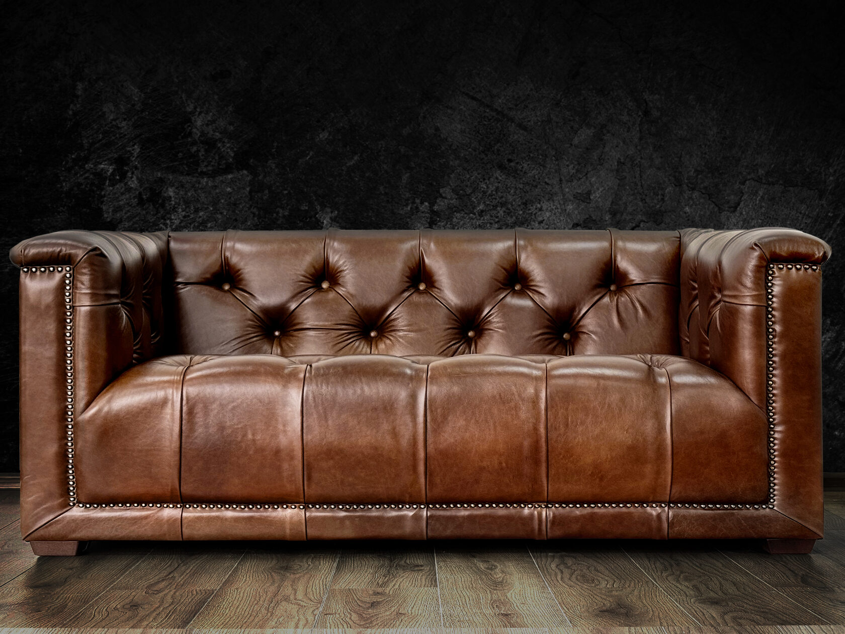 Размер посадочного места: 170х65 см. Высота сиденья: 45 см. Высота ножек: 5 см. Ножки: массив бука, высота 8 см, цвет - венге. Декоративные гвозди: Цвет - Black; бьются поштучно; Производство - Италия. Механизм трансформации: конструктивно не предусмотрен. Материал каркаса: березовая шлифованная фанера сорта 3/4, хвойный брус. Мягкое наполнение: В сиденье высокоплотный ППУ (поролон) топовых марок HR и EHR. В качестве упругого основания под подушками служит пружина змейка.