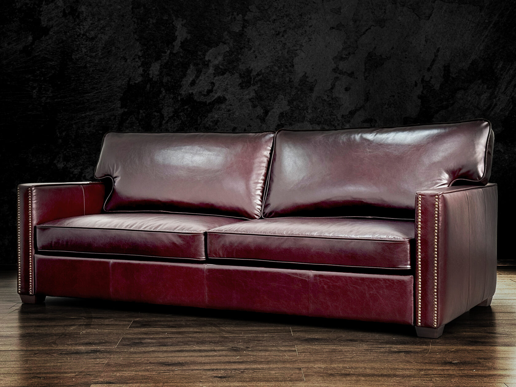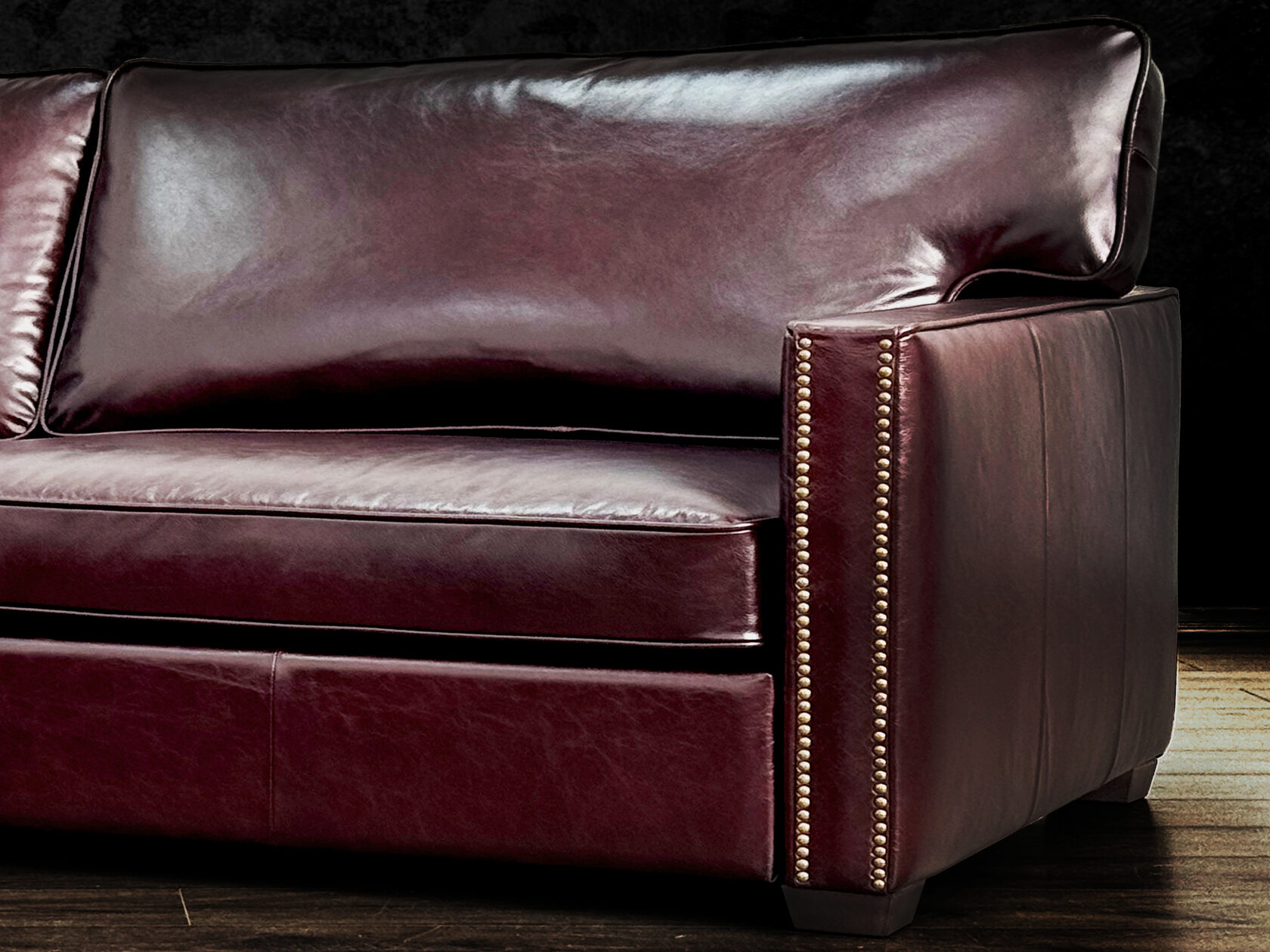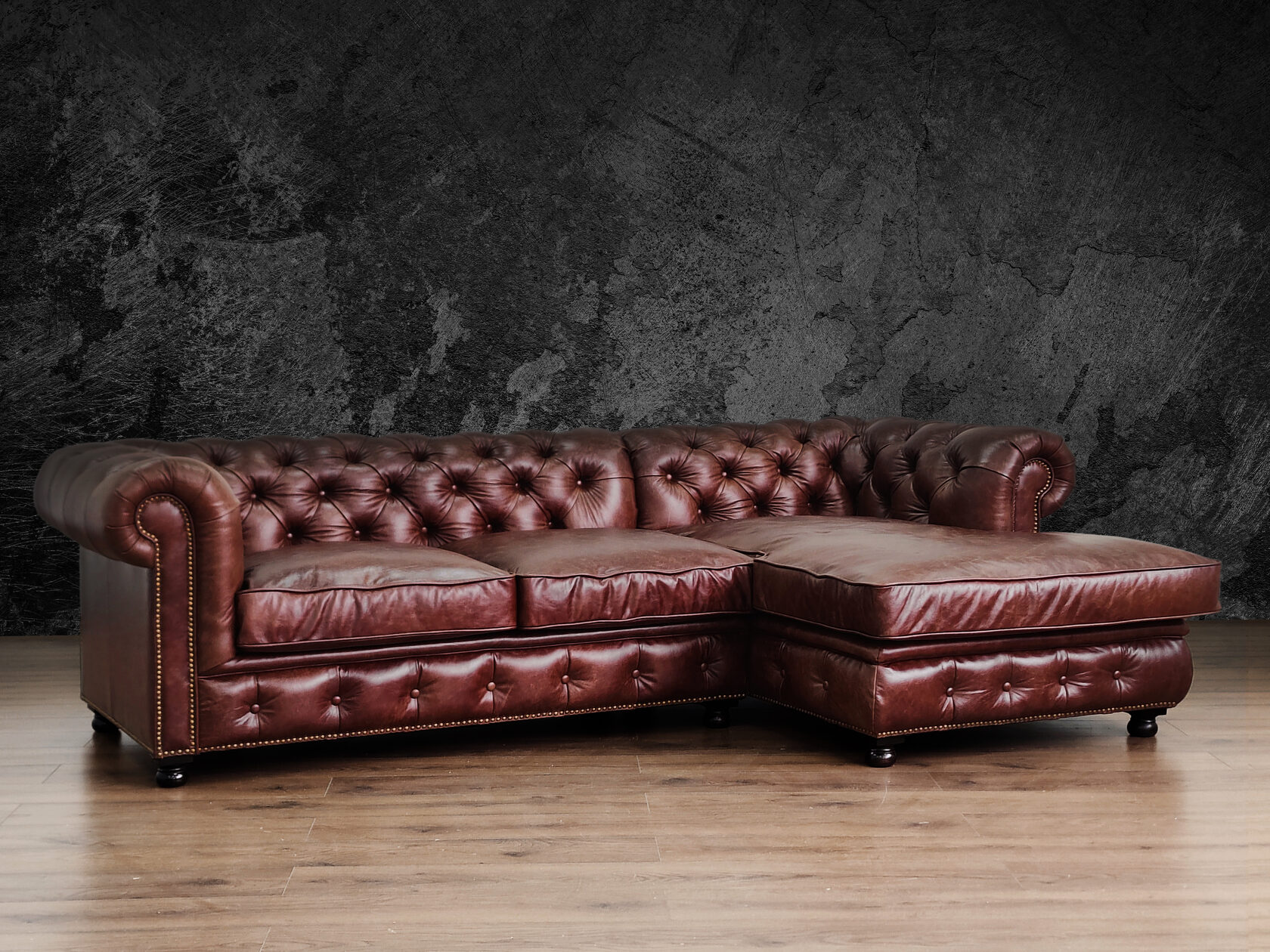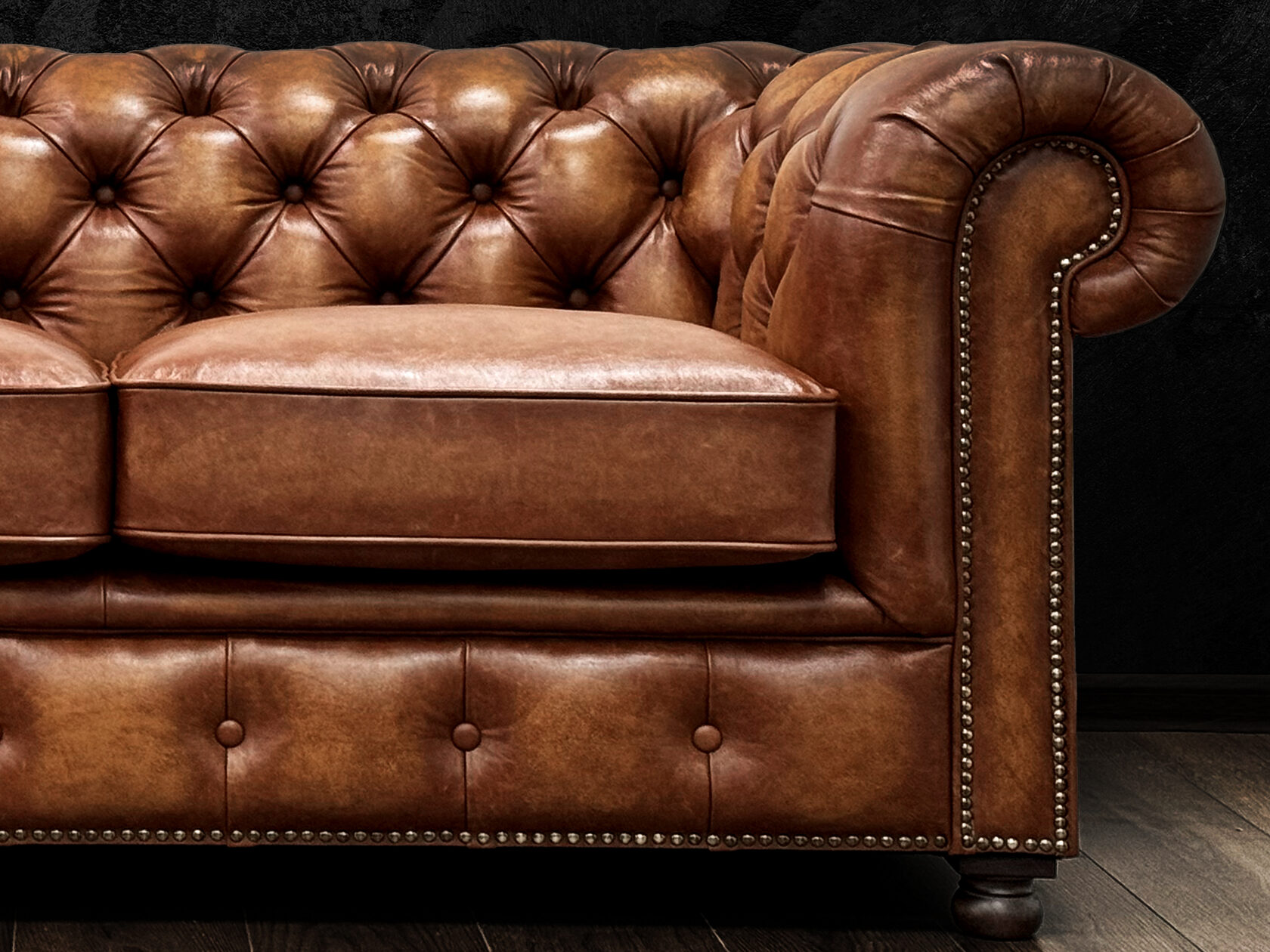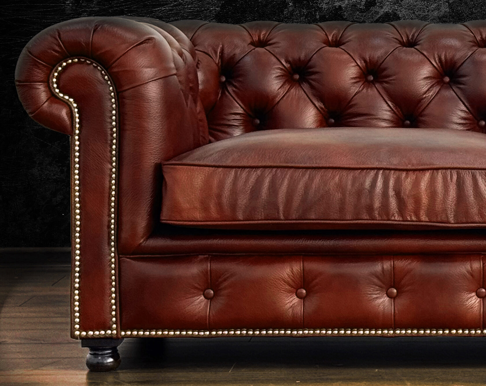 Размер посадочного места: 170х65 см. Высота сиденья: 45 см. Высота ножек: 5 см. Ножки: массив бука, высота 8 см, цвет - венге. Декоративные гвозди: Цвет - Black; бьются поштучно; Производство - Италия. Механизм трансформации: конструктивно не предусмотрен. Материал каркаса: березовая шлифованная фанера сорта 3/4, хвойный брус. Мягкое наполнение: В сиденье высокоплотный ППУ (поролон) топовых марок HR и EHR. В качестве упругого основания под подушками служит пружина змейка.