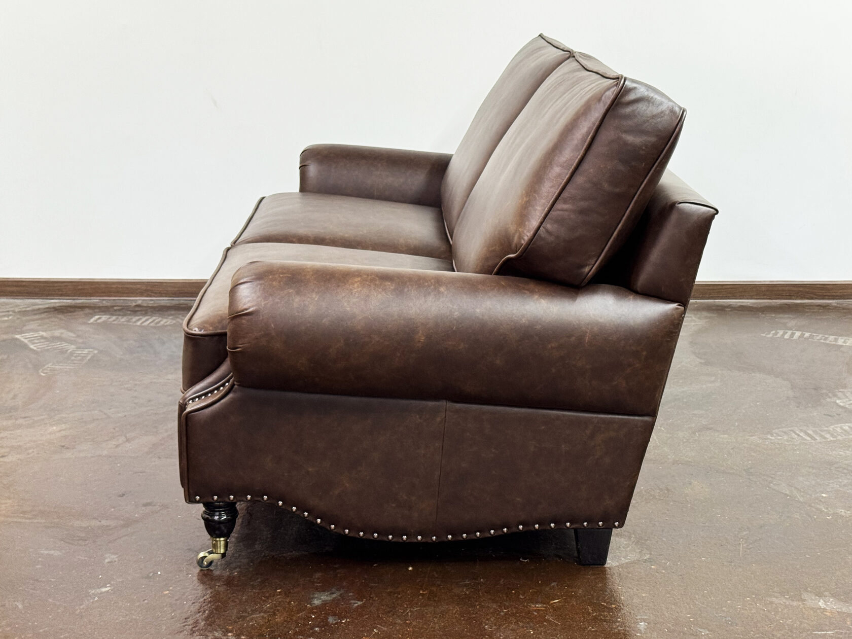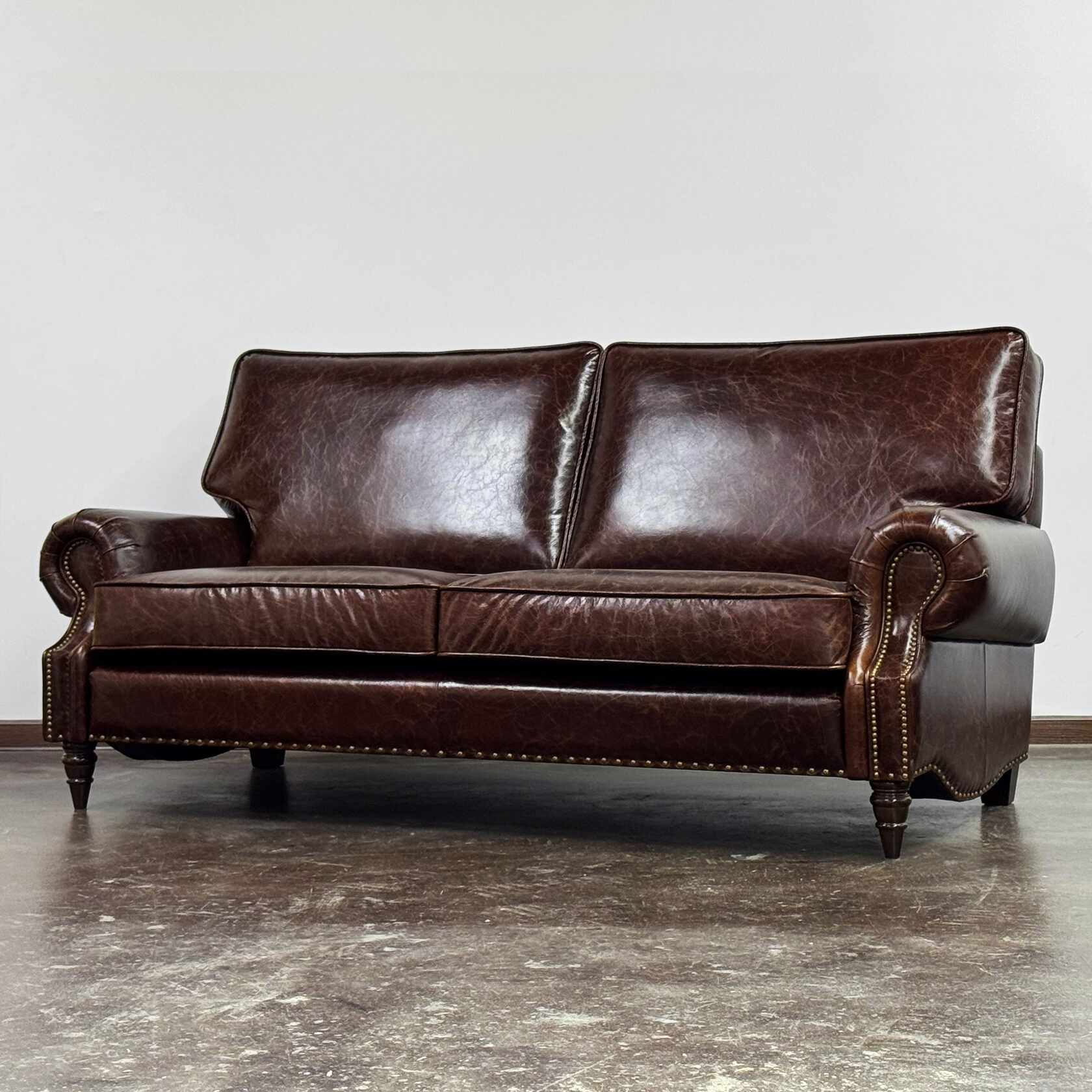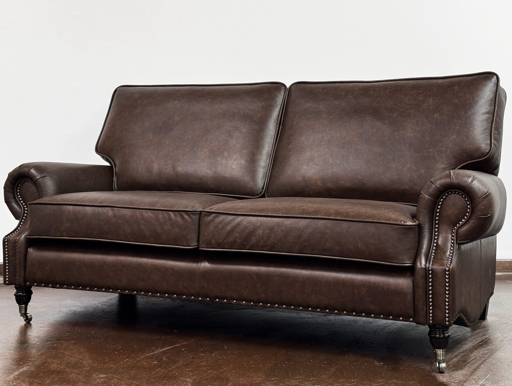 Габаритные размеры: Ш/Г/В 200х105х85 см. Размер посадочного места: 150х63 см. Высота сиденья: 50 см. Высота ножек: Передних 13 см. Задних 6 см. Ножки: массив бука, цвет - венге. Декоративные гвозди: Цвет - Old Coppered; поштучно; Производство - Италия. Механизм трансформации: Французская раскладушка; Спальное место 130х195 см. Внимание!!! Механизм в указанную стоимость не входит, (+21000 руб.) Материал каркаса: березовая шлифованная фанера сорта 3/4, хвойный брус. Мягкое наполнение: В сиденье высокоплотный ППУ (поролон) топовых марок HR и EHR. В качестве упругого основания под подушками служит независимый пружинный блок.