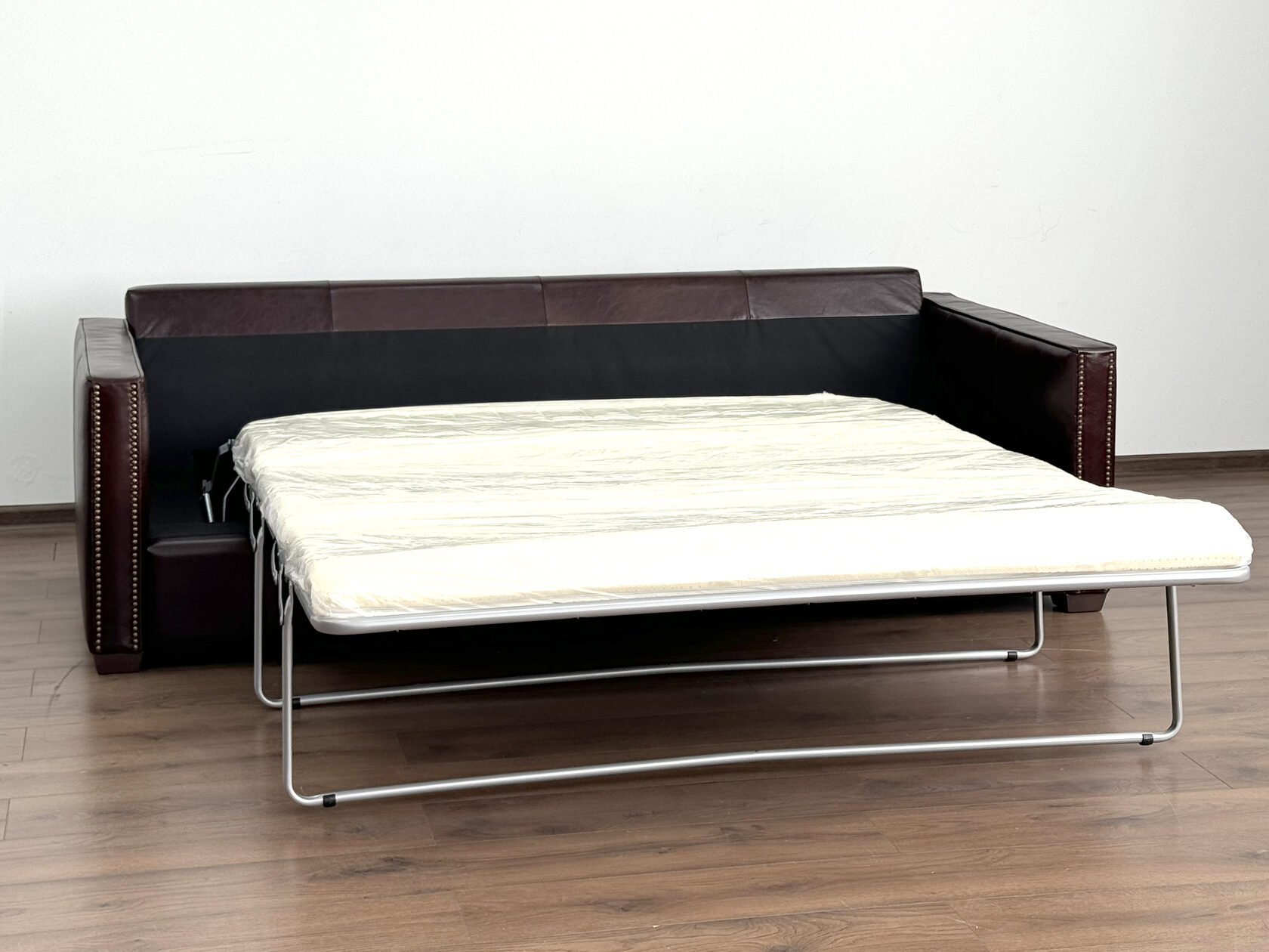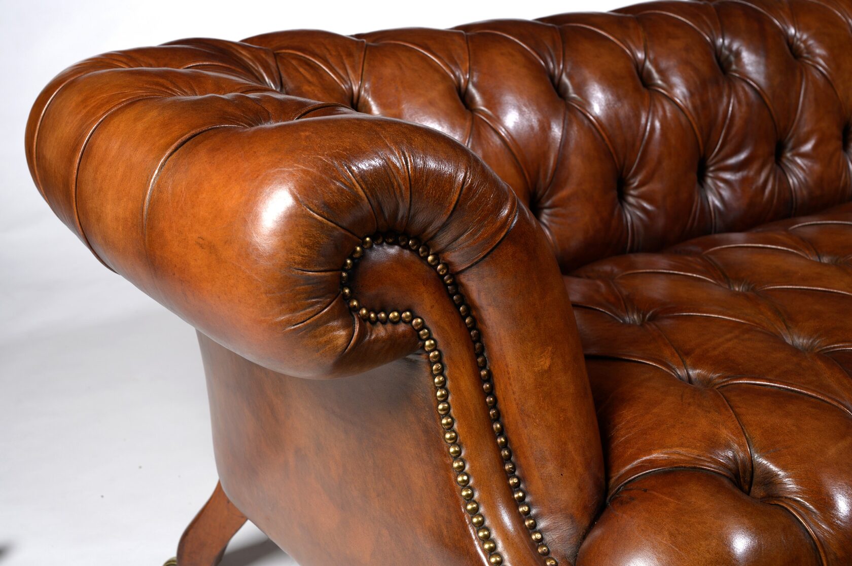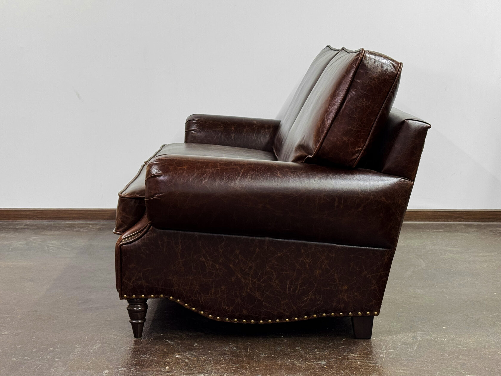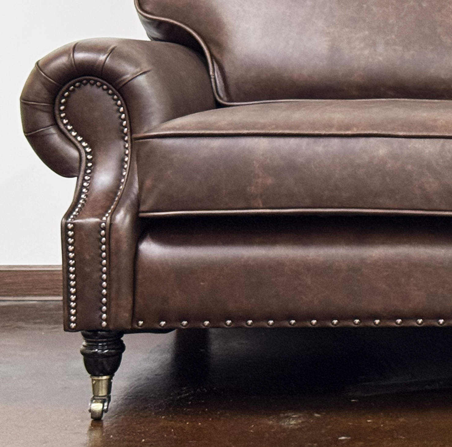 Габаритные размеры: Ш/Г/В 200х105х85 см. Размер посадочного места: 150х63 см. Высота сиденья: 50 см. Высота ножек: Передних 13 см. Задних 6 см. Ножки: массив бука, цвет - венге. Декоративные гвозди: Цвет - Old Coppered; поштучно; Производство - Италия. Механизм трансформации: Французская раскладушка; Спальное место 130х195 см. Внимание!!! Механизм в указанную стоимость не входит, (+21000 руб.) Материал каркаса: березовая шлифованная фанера сорта 3/4, хвойный брус. Мягкое наполнение: В сиденье высокоплотный ППУ (поролон) топовых марок HR и EHR. В качестве упругого основания под подушками служит независимый пружинный блок.