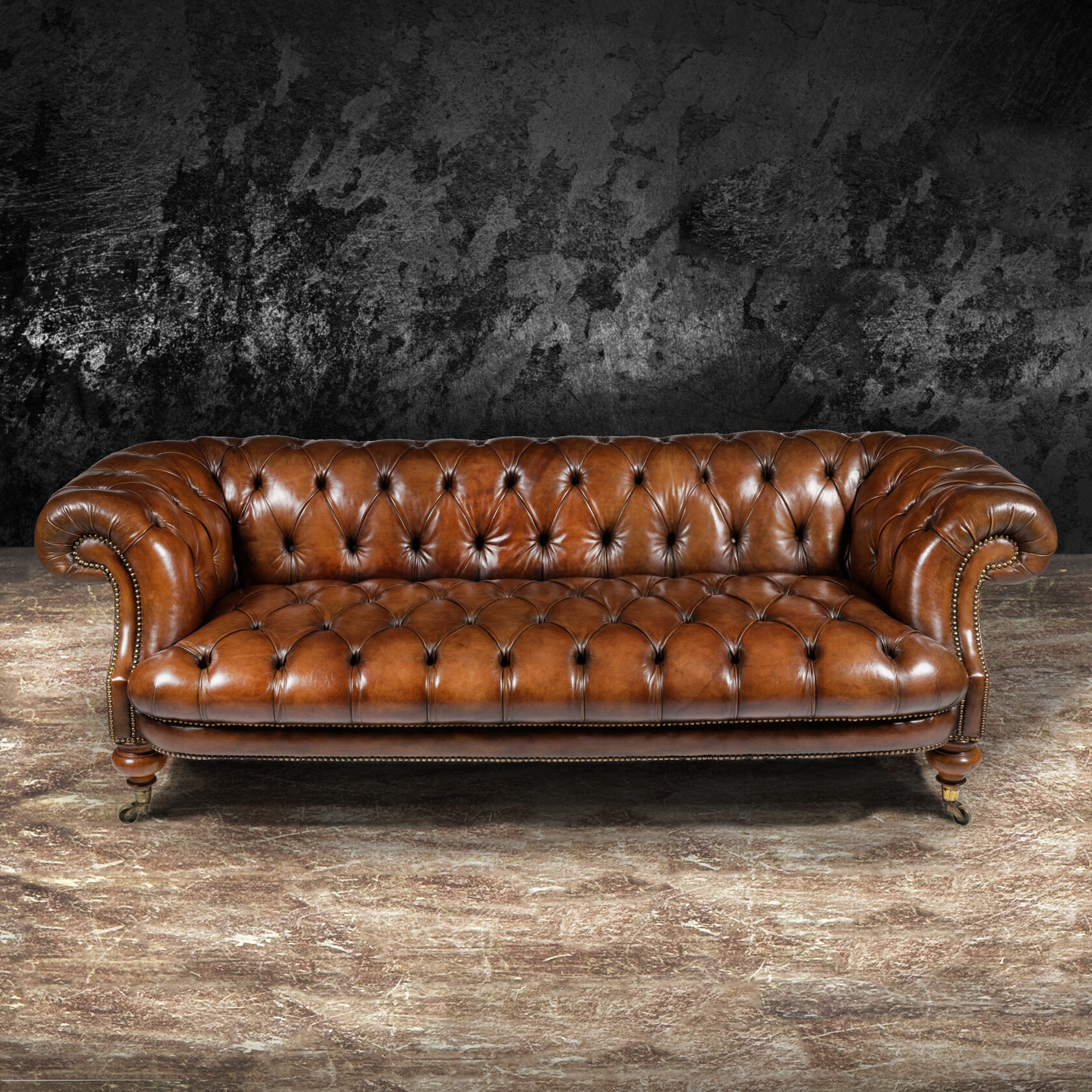 Габаритные размеры: Ш/Г/В 280х180х78 см. Размер посадочного места: 210х63 см. Высота сиденья: 48 см. Высота ножек: 8 см. Ножки: массив бука, высота 8 см, цвет - орех тёмный. Декоративные гвозди: Цвет - Old Gold; поштучно; Производство - Италия. Механизм трансформации: не установлен. Материал каркаса: березовая шлифованная фанера сорта 3/4, хвойный брус. Мягкое наполнение: В сиденье высокоплотный ППУ (поролон) топовых марок HR и EHR. В качестве упругого основания под подушками служит независимый пружинный блок.