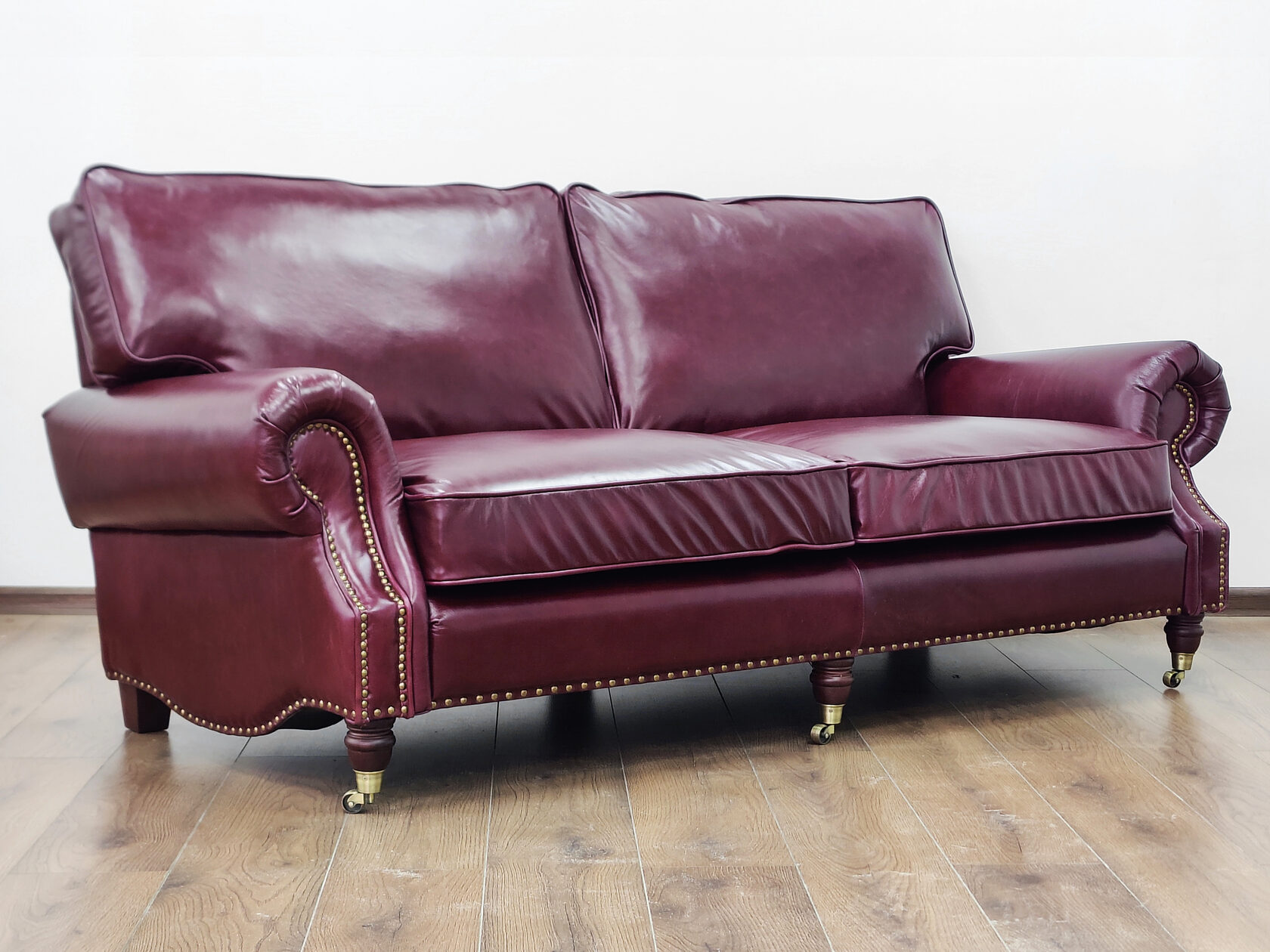 Габаритные размеры: Ш/Г/В 220х85х75 см. Размер посадочного места: 200х65 см. Высота сиденья: 50 см. Высота ножек: 5 см./ 7 см. Ножки: массив бука, цвет - Вишня. Декоративные гвозди: Цвет - Old Coppered (старая медь); поштучно; Производство - Италия. Механизм трансформации: Французская раскладушка; Спальное место 160х195 см. Внимание!!! Механизм в указанную стоимость не входит, (+21000 руб.) Материал каркаса: березовая шлифованная фанера сорта 3/4, хвойный брус. Мягкое наполнение: В сиденье высокоплотный ППУ (поролон) топовых марок HR и EHR. В качестве упругого основания под подушками служит пружина змейка.
